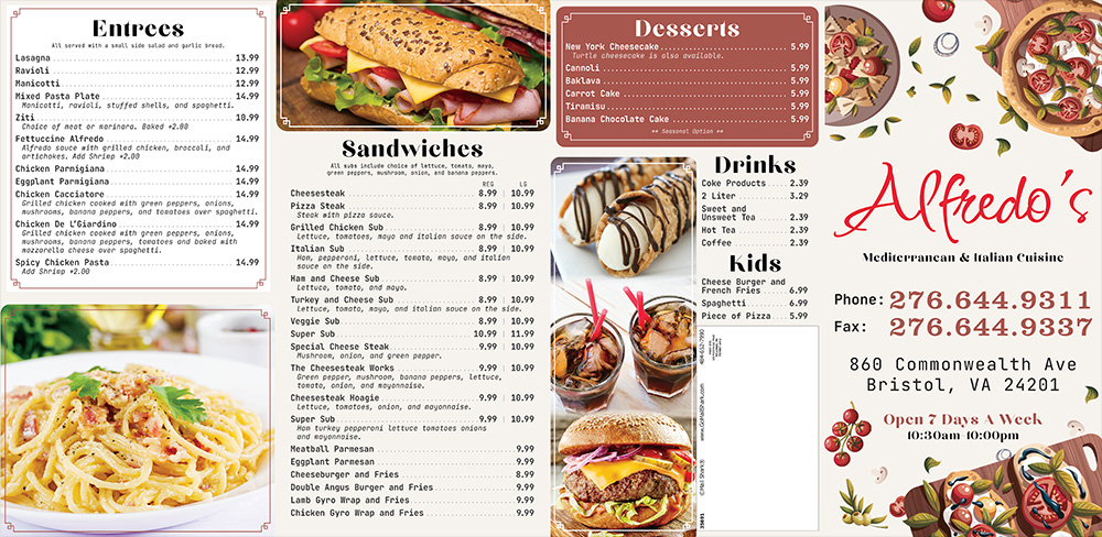 Alfredo's Italian Cuisine, Pizza, Delivery, Catering, Sandwiches, Lunch, Dinner, Carry-Out, Dine In, or Dine on Our New Patio.